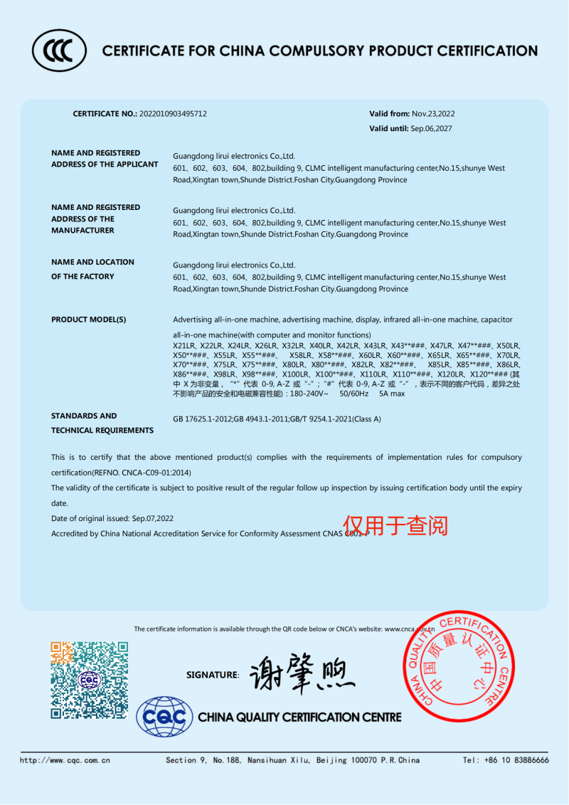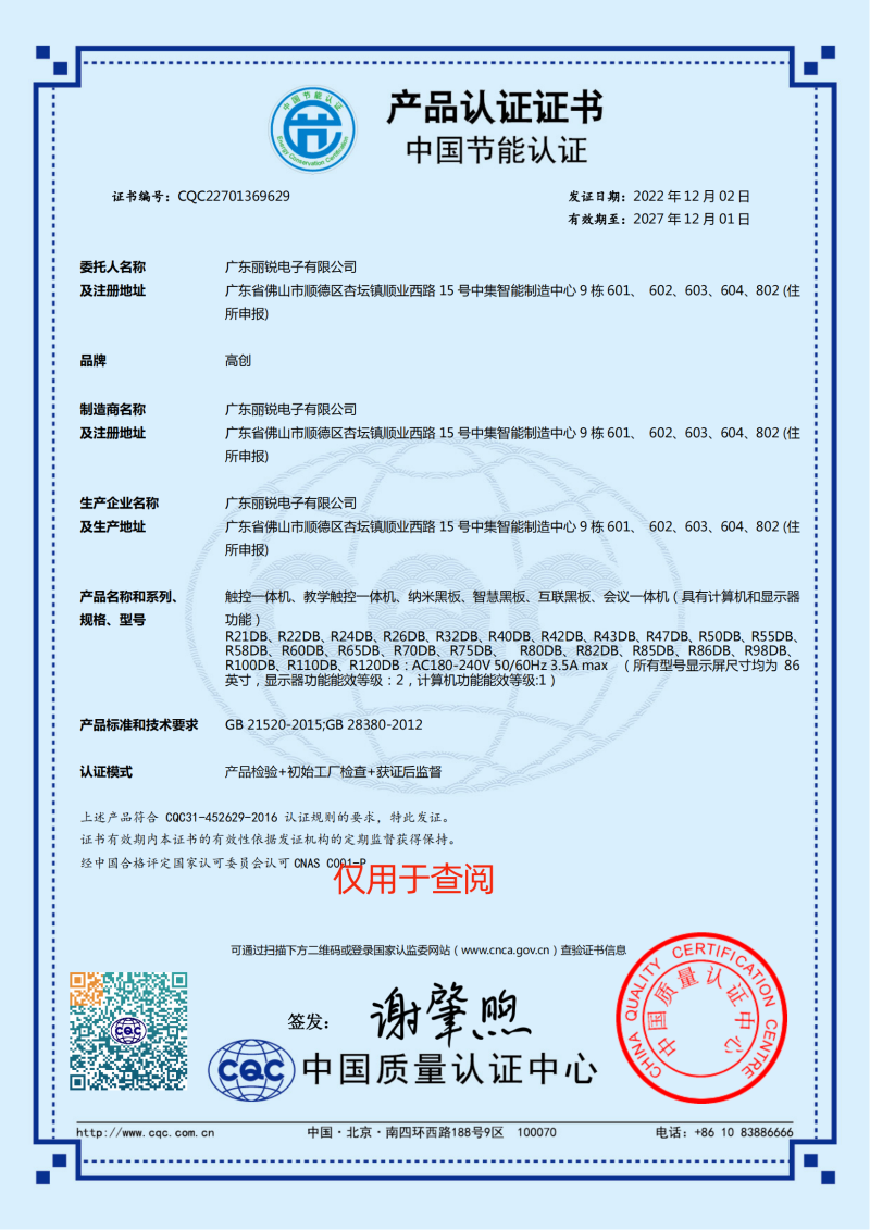 獲得國(guó)家產(chǎn)品3C認(rèn)證證書(shū),正在申請(qǐng)ISO9001認(rèn)證證書(shū)和節(jié)能證書(shū)、產(chǎn)品可靠性檢驗(yàn)證書(shū)及企業(yè)安全生產(chǎn)證書(shū),公司年生產(chǎn)能力大約30000臺(tái)。