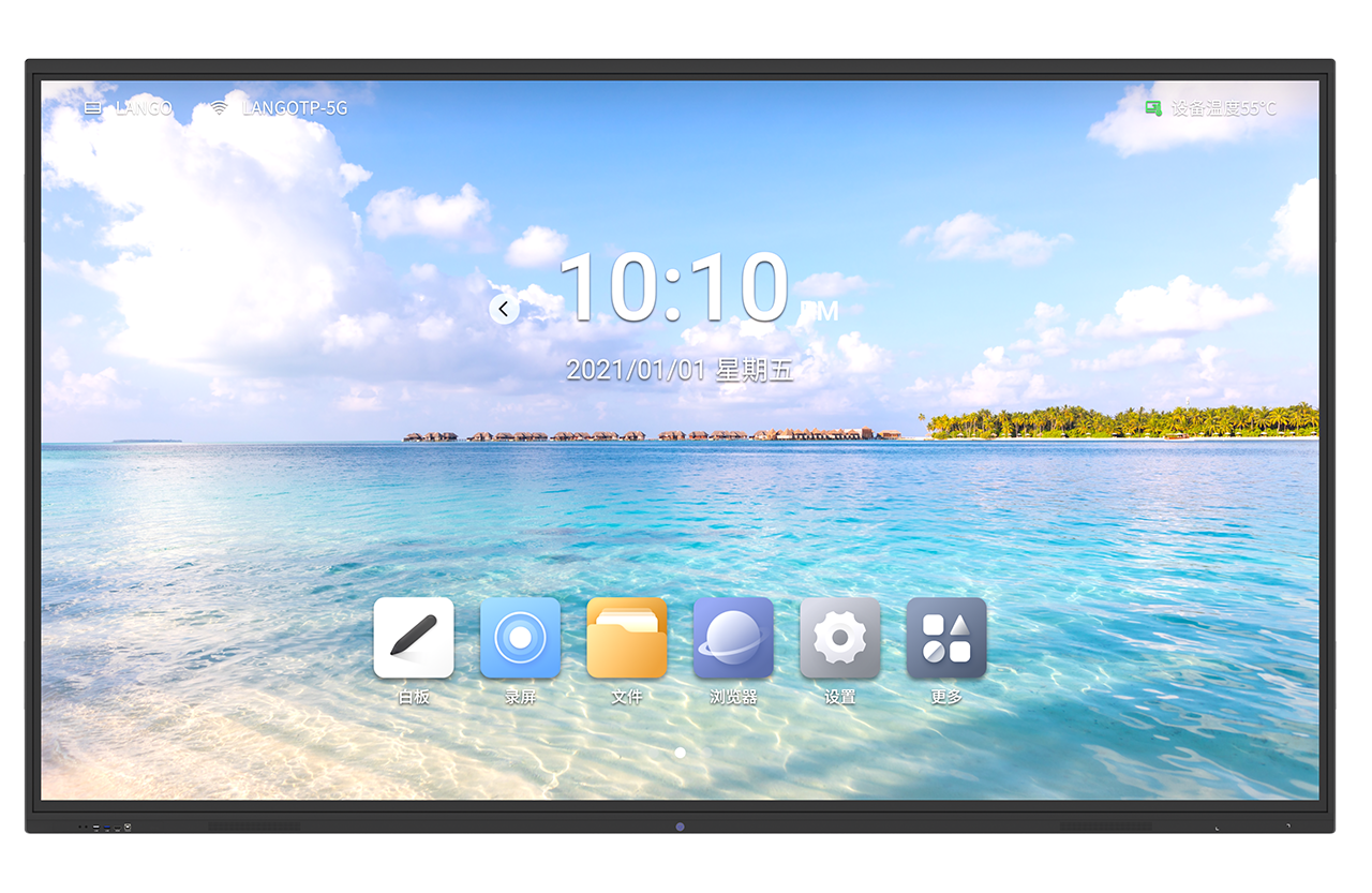 互動教學、會議培訓、來賓歡迎、智能白板、觸屏書寫、掃碼帶走、文檔演示、全通道批注、視頻會議、防眩護眼;觸摸技術:紅外觸摸
